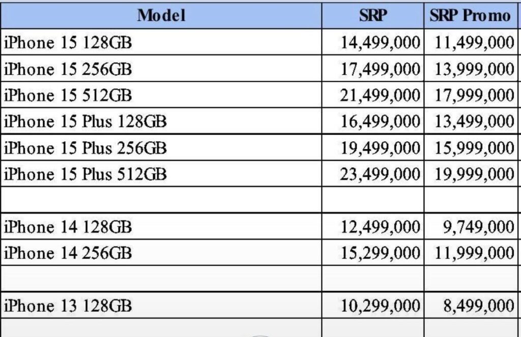 Bahkan, informasi lebih detail mengenai iPhone 15 yang turun harga juga turut dibagikan oleh akun Instagram @hidupbuatmakan. Sebagai contoh, iPhone 15 256GB kini dipasarkan dengan harga Rp 13.999.000, jauh lebih murah dari harga sebelumnya, Rp 17.499.000.