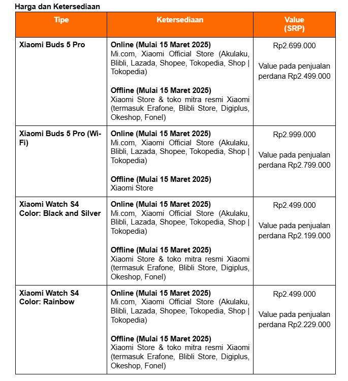 “Kami bangga bisa membawa teknologi audio transmisi Wi-Fi terbaru melalui Xiaomi Buds 5 Pro. Selain itu, kami juga telah menghadirkan berbagai upgrade untuk Xiaomi Watch S4 yang kian trendi dan modern,” ungkap Andi Renreng, Marketing Director Xiaomi Indonesia..