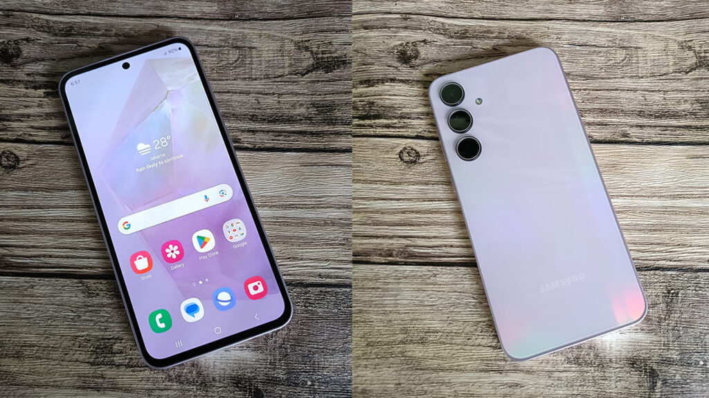 Untuk melindungi agar layar kedua smartphone ini tidak mudah tergores, Samsung telah memproteksinya dengan Corning Gorilla Glass Victus+. Galaxy A35 5G datang dengan dimensi 161,7 x 78 x 8,2 mm, sedangkan Galaxy A36 5G memiliki dimensi 162,9 x 78,2 x 7,4 mm.