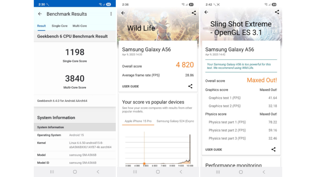 Pertanyaan yang banyak ditanyakan oleh mereka yang tertarik membeli sebuah smartphone adalah bagaimana dengan performa yang dimilikinya. Nah, untuk menilai performa Galaxy A56 5G, kamu bisa lihat hasil benchmark di bawah ini yang telah dilakukan oleh nativzen.com.