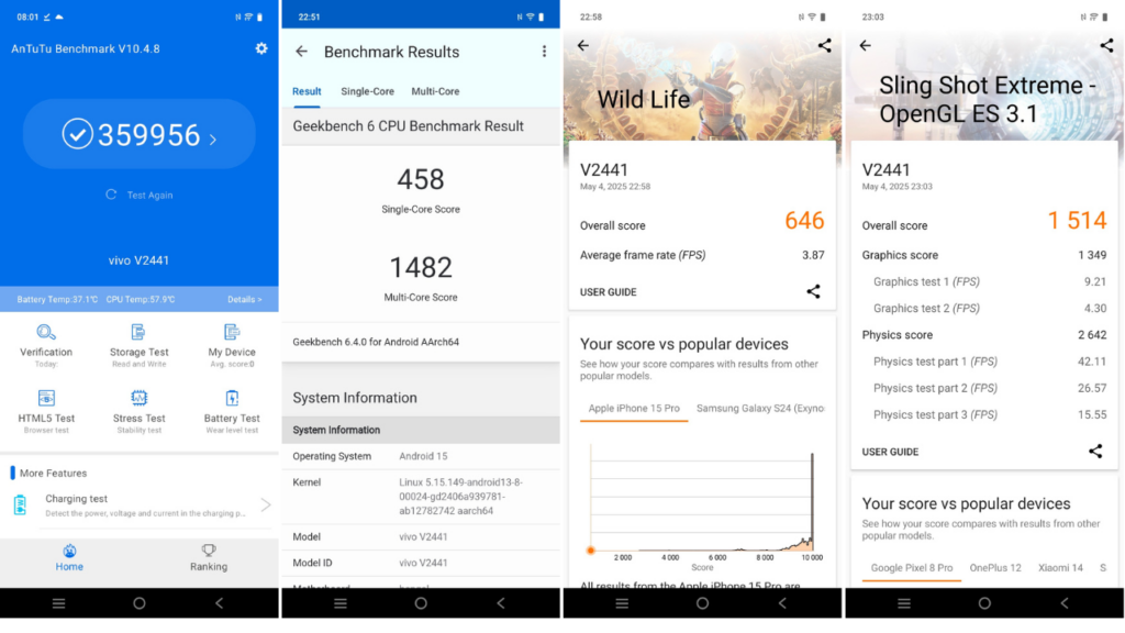Lalu, bagaimana performa V50 Lite 4G secara nyata? Seperti biasa, nativzen.com juga melakukan benchmark melalui sejumlah aplikasi seperti AnTuTu 10.2.0, Geebench 6, 3DMark, dan PCMark. Hasilnya, bisa kamu lihat melalui screenshoot di bawah ini.