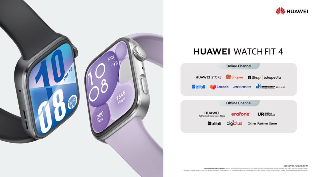 Penawaran tersebut bisa didapatkan untuk setiap pembelian HUAWEI Watch Fit 4 Series melalui platform e-commerce favorit seperti Blibli, Shopee, Tokopedia, Lazada, Eraspace, dan DatascripMall.ID.