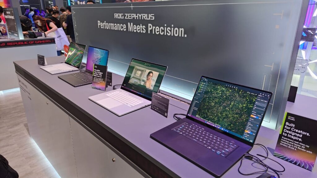 Sementara, lini Zephyrus menghadirkan performa tinggi dalam desain tipis dan ringan yang cocok untuk mobilitas tinggi. ROG Flow Z13 dan XG Mobile terbaru turut dipamerkan, dengan dukungan Thunderbolt 5 untuk ekspansi grafis.