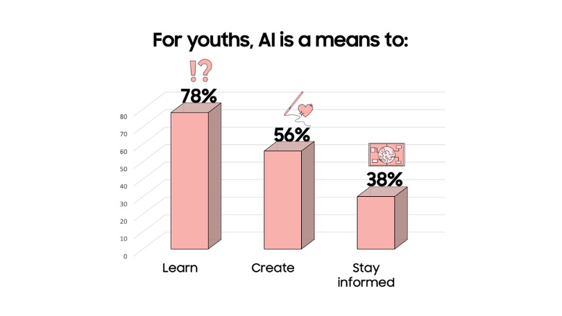 Lebih lanjut, CU Kim juga mengatakan bahwa Samsung berusaha memahami harapan dan aspirasi anak muda di sejumlah wilayah. Dalam temuan survei ini, menunjukkan bahwa anak muda di Asia Tenggara merupakan penggguna AI tertinggi.