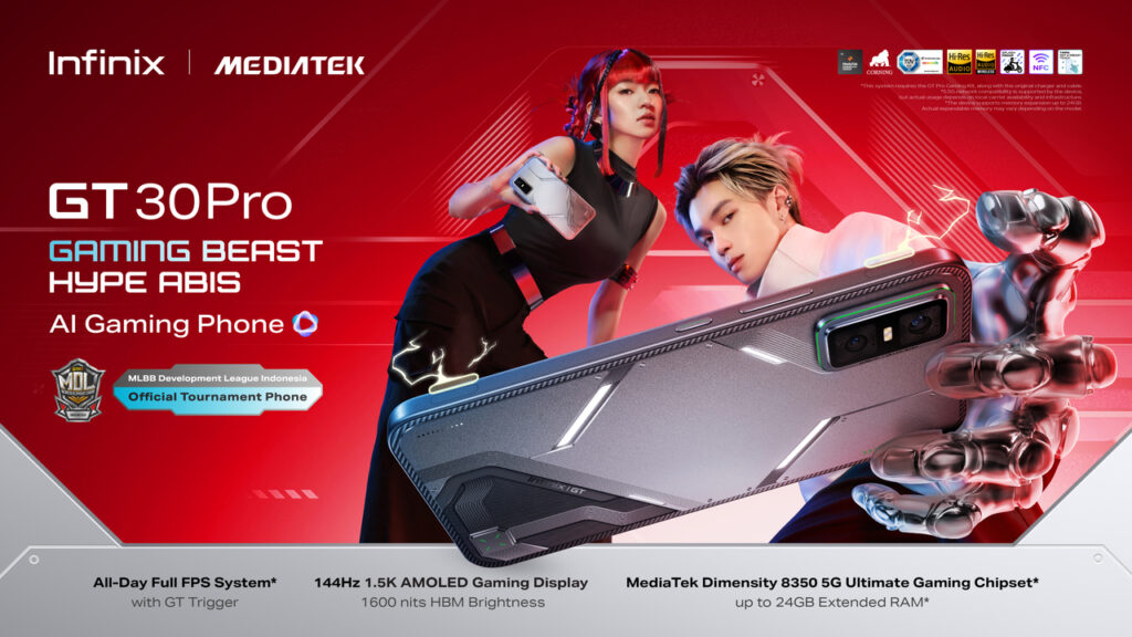 “Infinix GT 30 Pro kami hadirkan sebagai evolusi dari lini GT Series dengan performa ekstrem sekaligus pelengkap gaya hidup yang relevan dengan tren gaming dan gaya hidup aktif anak muda,” ujar Sergio Ticoalu, Head of Marketing Infinix Indonesia.