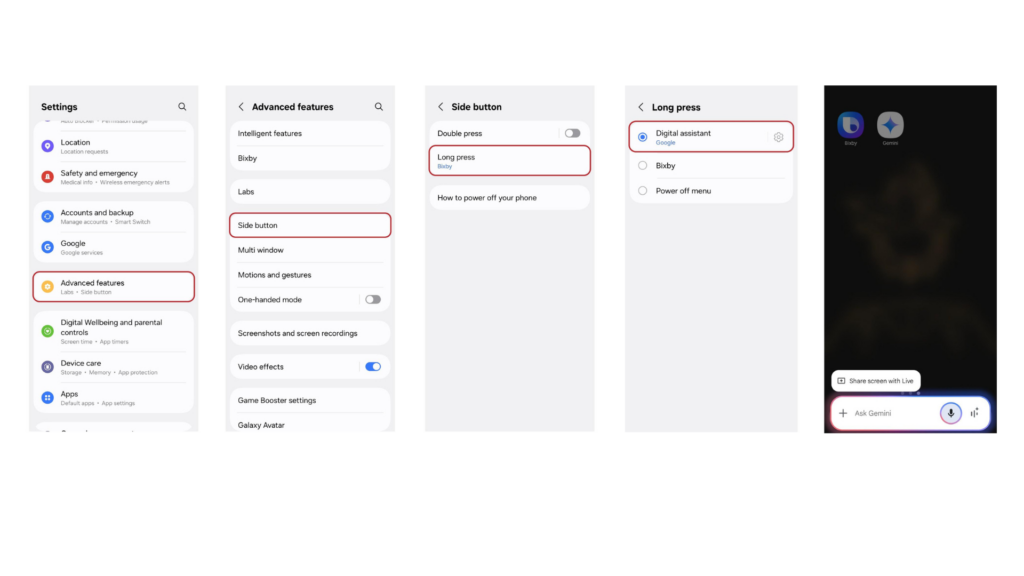 - Pilih Digital Assistant dan pilih Google Gemini sebagai asisten digital kamu