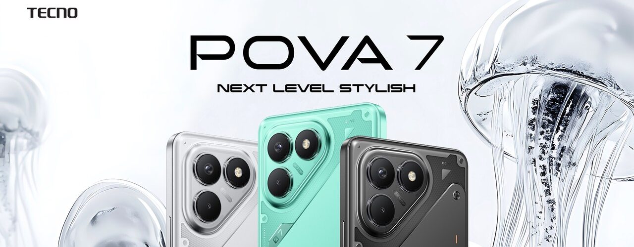TECNO POVA 7 akan tersedia dengan tiga pilihan warna, yaitu, Magic Silver, Geek Black, Neon Cyan. Penyimpanan internal juga tersedia dengan dua opsi: