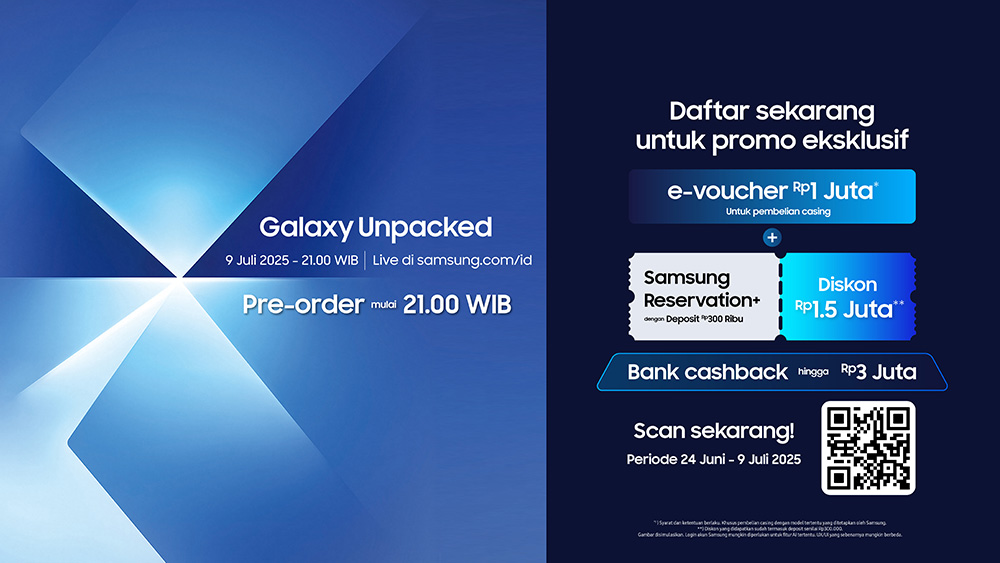 “Kami telah resmi menyampaikan bahwa next Foldable akan segera hadir, dan Galaxy Unpacked akan digelar pada 9 July pukul 21.00 WIB,” ujar Ilham Indrawan, MX Product Marketing Senior Manager Samsung Electronics Indonesia.