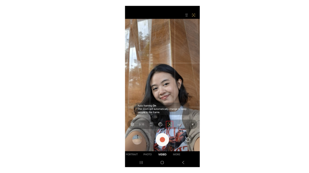 Mau bikin vlog icip-icip dessert viral bareng teman? Kamera depan Galaxy A56 5G siap bikin konten kamu makin kece. Jangan lupa aktifkan fitur Auto Framing yang akan bekerja otomatis menyesuaikan komposisi.