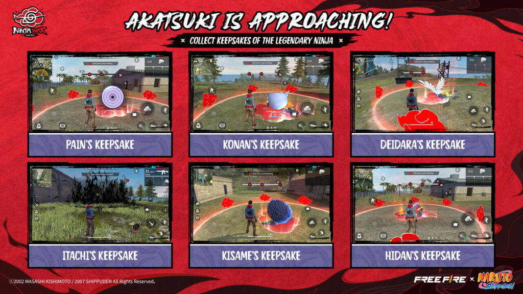 Kolaborasi kedua ini akan menghidupkan pertarungan antara Desa Konoha dan Akatsuki di dalam dunia Free Fire.