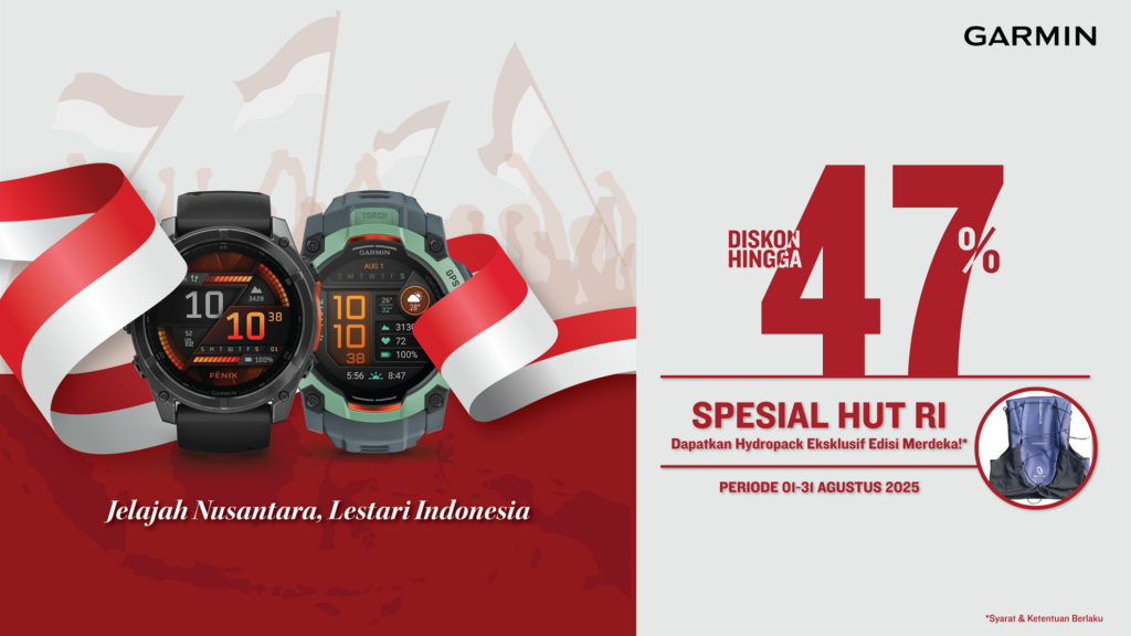 Selama periode 1–31 Agustus 2025, pelanggan bisa menikmati diskon khusus hingga 47% untuk berbagai pilihan smartwatch multisport Garmin, termasuk seri fēnix, epix, dan Instinct. Promo ini berlaku di seluruh Garmin Brand Store, website Garmin Indonesia, serta mitra e-commerce.