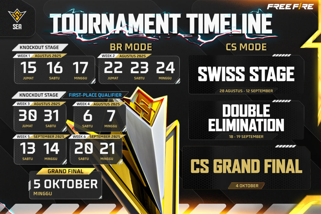 Bagi kamu yang tertarik menyaksikan pertandingan FFWS SEA Fall 2025, bisa mulai 15 Agustus 2025 di YouTube dan TikTok Free Fire Esports ID. Siaran pertandingan akan dimulai pada pukul 18.00 WIB.