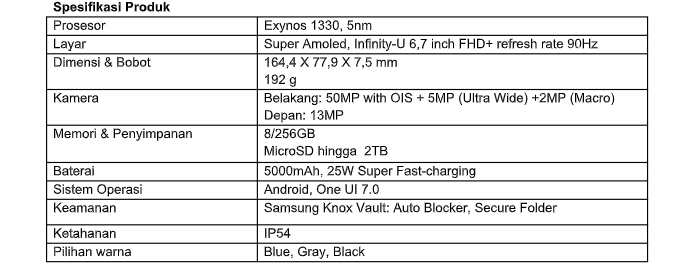 “Samsung terus berkomitmen menghadirkan inovasi yang relevan dan terjangkau bagi masyarakat Indonesia,” ujar Verry Octavianus, MX Product Marketing Senior Manager, Samsung Electronics Indonesia.