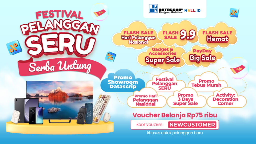 Melalui kampanye “Festival Pelanggan SERU (Serba Untung)”, DatascripMall.ID menyuguhkan berbagai promo menarik yang siap memberikan pengalaman belanja berbeda kepada seluruh pelanggan setianya.