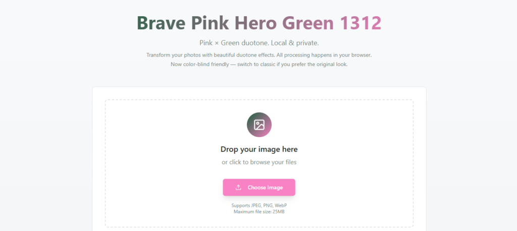 Website tersebut memungkinkan pengguna mengunggah foto dan mengaplikasikan efek duotone langsung di browser. Melalui warna dan simbol sederhana, masyarakat menunjukkan suara mereka dengan cara kreatif dan damai.