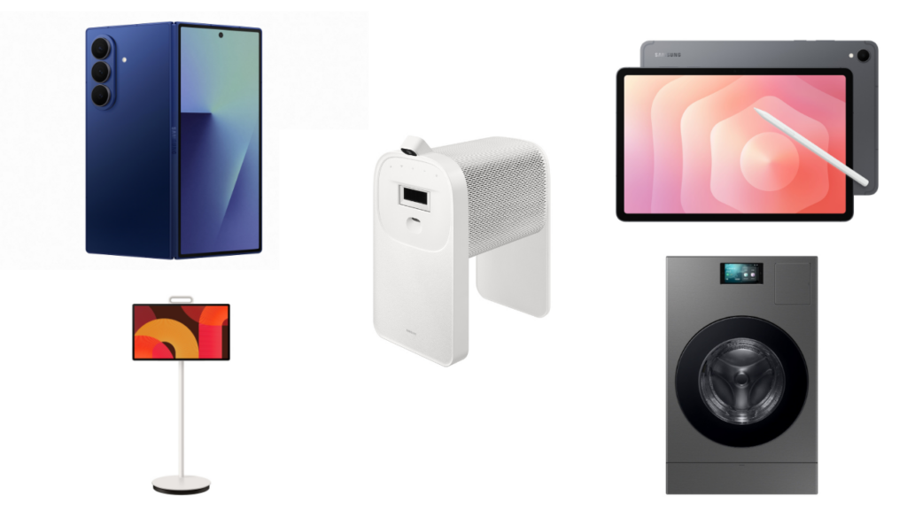 Bespoke AI Refrigerator with Hybrid Cooling – memanfaatkan dua sumber daya, yaitu kompresor dan modul Peltier, untuk menghadirkan pendinginan yang efisien dan presisi. Kulkas ini juga dilengkapi dengan AI Vision Inside versi terbaru, yang mampu mengenali hingga 37 jenis makanan segar dan 50 jenis makanan olahan. Selain itu, kulkas ini memiliki layar pintar 9 inci yang dapat berfungsi sebagai pusat pengendali perangkat rumah terkoneksi, menampilkan daftar makanan serta resep rekomendasi, sekaligus menyediakan berbagai bentuk hiburan.