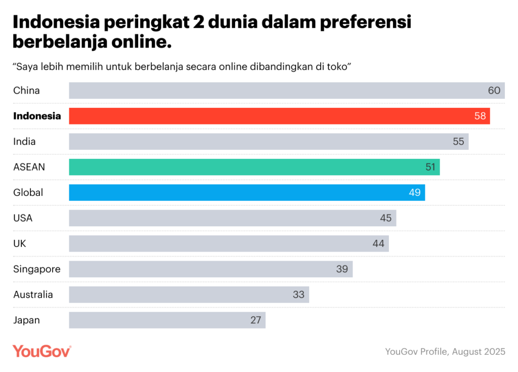 “Konsumen Indonesia kini lebih cerdas, selektif, dan menuntut value for money yang lebih besar, kecepatan pengiriman, serta personalisasi. Platform dan penjual harus cepat beradaptasi dengan ekspektasi ini,” ujar Edward Hutasoit, General Manager YouGov Indonesia & India.