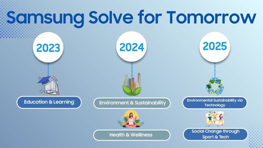 Melalui program CSR yang berfokus pada pelajar SMA/SMK/MA sampai Mahasiswa D3/D4/S1 yaitu Samsung Solve for Tomorrow (SFT) dan Samsung Innovation Campus (SIC), Samsung memberikan pembekalan keahlian teknologi untuk menciptakan solusi nyata bagi masyarakat.