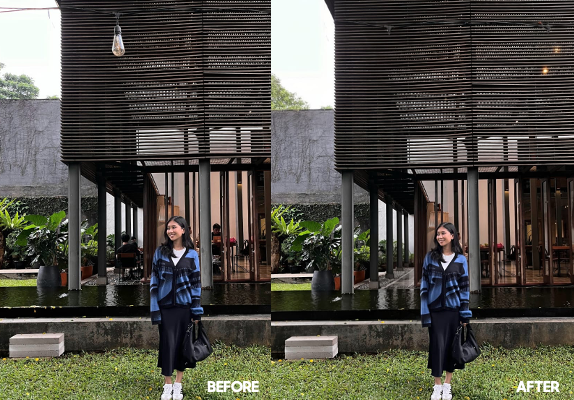 Kemampuan canggih ini sangat berguna misalnya ketika kamu ingin membuat beberapa slide konten OOTD saat sedang liburan. Meski ramai orang lalu lalang, kamu tetap bisa dapetin foto yang clean dan aesthetic dengan menghapus keramaian yang mengganggu di frame.