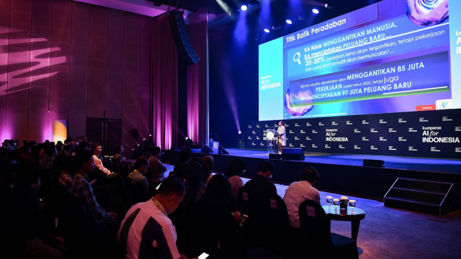 “Berdasarkan berbagai survei, Indonesia dinilai sebagai negara yang mampu menerima AI dengan baik, tidak takut, dan itu merupakan pertanda yang baik,” jelasnya.