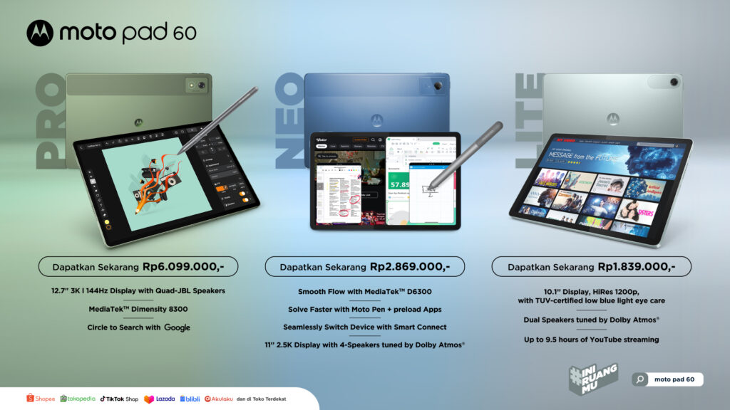 Dengan kehadiran Moto Pad 60 Neo secara resmi di pasar Indonesia, Motorola kini melengkapi lini tabletnya agar setiap pengguna dapat menemukan #IniRuangMu sesuai kebutuhan dan gaya hidup masing-masing.