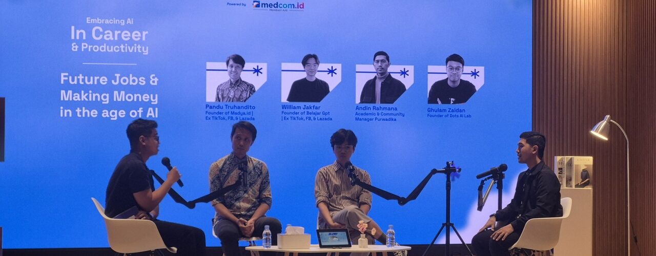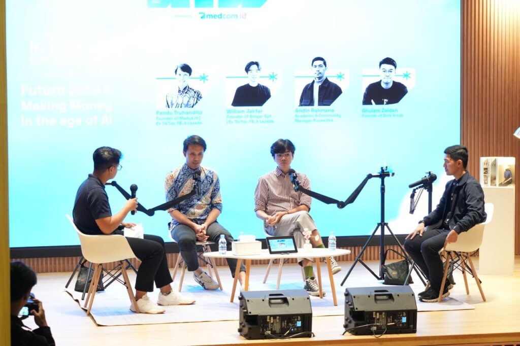 Di sesi pertama berjudul “Future Jobs & Making Money in the Age of AI”, para pembicara seperti Pandu Truhandito (Madya.id), William Jakfar (BelajarGPT), dan Andin Rahmana (Purwadhika) ngomongin hal yang paling sering bikin penasaran.
