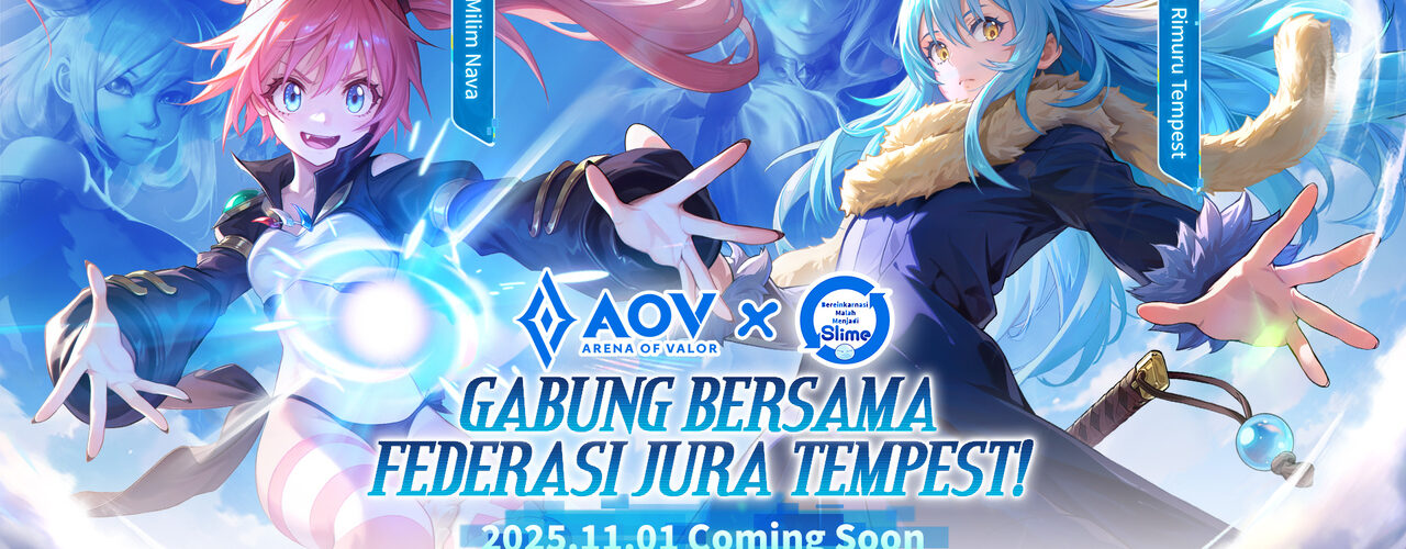 Dari dunia fantasi ke arena pertarungan, tiga karakter utama TenSura kini hidup di AOV melalui skin kolaborasi yang memukau: