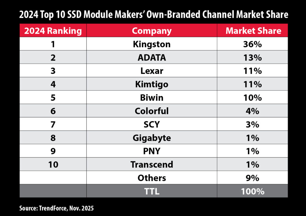 Kingston mempertahankan keunggulan yang solid sekaligus mencatat pertumbuhan pangsa pasar dibandingkan tahun 2023.