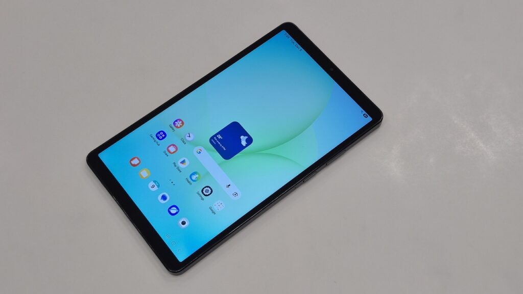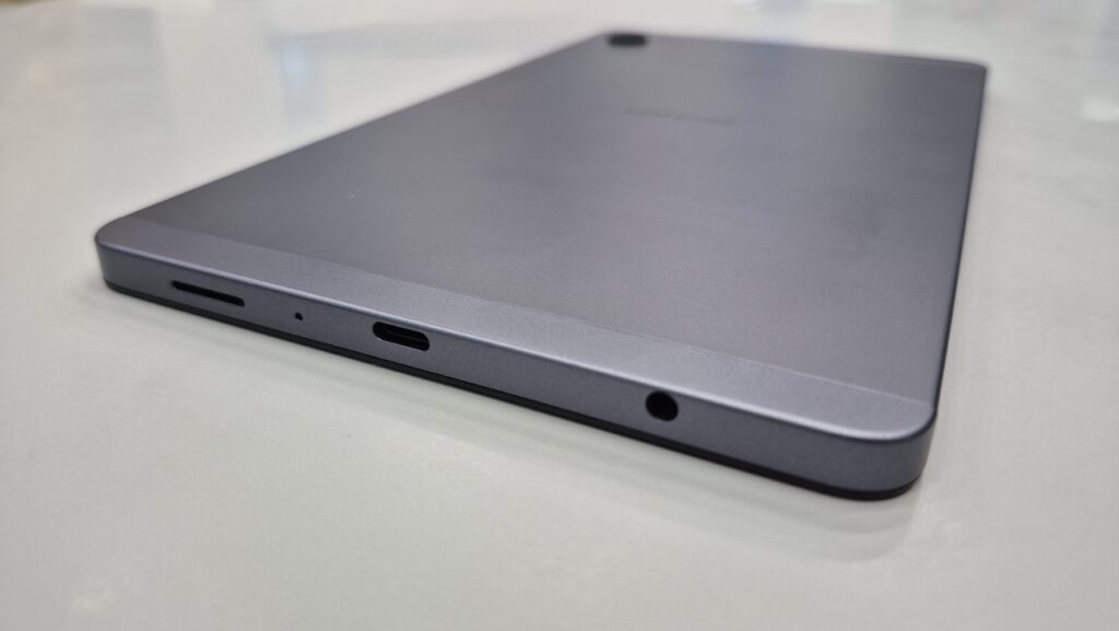 Ketebalan bodi tablet ini ada di kisaran 8mm dengan bobot sekitar 335 gram saja. Oleh karena itu, Galaxy Tab A11 ini sangat hemat tempat di dalam tas dan mudah dibawa bepergian. Bobotnya yang ringan juga tidak membuat tangan cepat pegal saat digunakan dengan satu tangan.