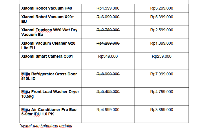 Sistem navigasi LDS memastikan setiap sudut rumah terpetakan dengan cepat dan akurat. Selain itu, rangkaian Xiaomi Smart Home lainnya juga hadir dengan penawaran menarik. Xiaomi Smart Camera, hingga Mijia Air Conditioner Pro Eco 5-Star 1.0 PK Inverter.