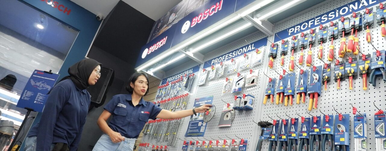 Toko ini tidak hanya berfungsi sebagai tempat pembelian alat, tetapi juga sebagai ruang untuk mencoba langsung produk, mendapatkan edukasi mengenai perkakas Bosch, serta mengakses layanan purna jual.