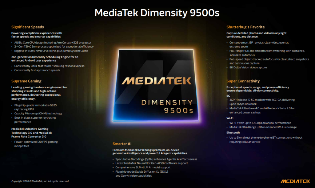 Fitur Dimensity 9500s, meliputi: