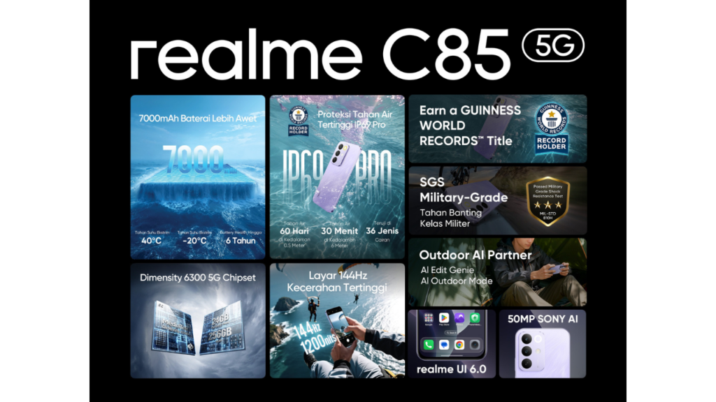 Hal tersebut menuntut smartphone yang tidak hanya cepat, tetapi juga “bandel”, tahan lama, dan siap digunakan di berbagai kondisi. Guna menjawab kebutuhan tersebut, berikut beberapa alasan mengapa realme C85 5G hadir sebagai solusi yang komprehensif.