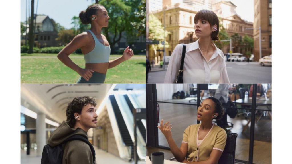 Desain yang mendukung interaksi sosial memungkinkan pengguna tetap menikmati audio sambil berkomunikasi secara alami dengan orang di sekitar, dengan rasa lelah pada telinga yang lebih minim berkat aliran udara yang lebih baik dan tanpa tekanan pada saluran telinga.