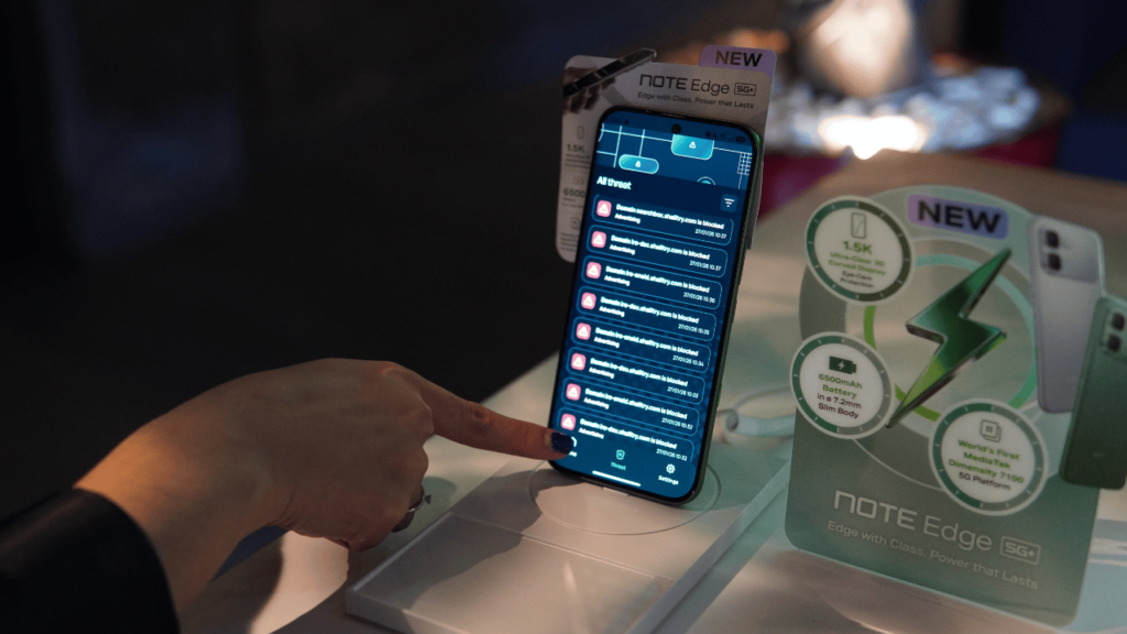 Dengan begitu, pengguna perangkat NOTE Edge 5G+ dapat tetap waspada dan terkendali. Dengan tampilan antarmuka yang sederhana dan user-friendly, IntelliBroń Aman menghadirkan pengalaman perlindungan digital yang praktis, mudah diakses dan bebas dari rasa khawatir.
