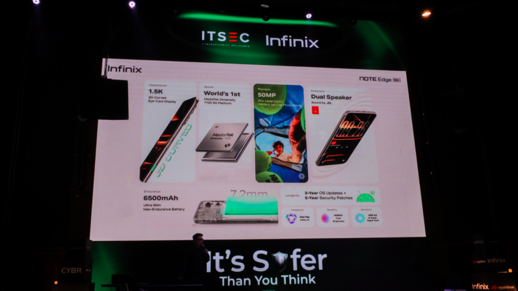 Melalui kerja sama ini, IntelliBroń Aman, solusi keamanan siber berbasis kecerdasan buatan (AI) besutan ITSEC Asia, kini terintegrasi pada Infinix NOTE Edge 5G+ di Indonesia. Ini menjadi peluncuran global pertama IntelliBroń Aman di lini Infinix NOTE.