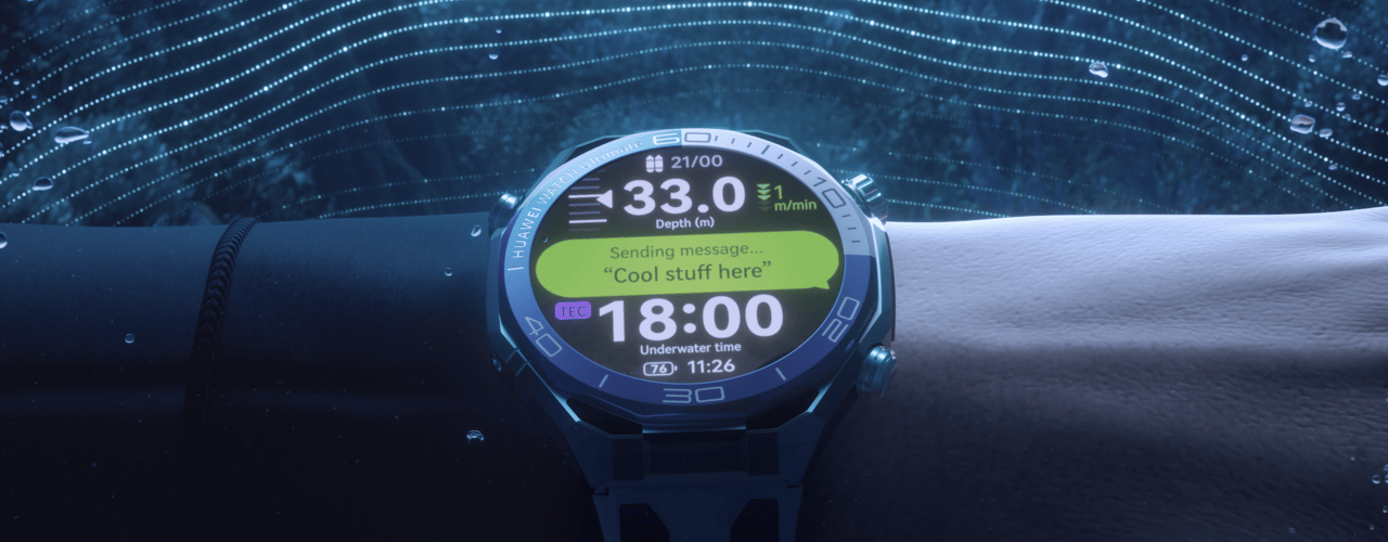 Kini HUAWEI WATCH Ultimate 2 segera hadir menjadi smartwatch pertama dengan ketahanan air hingga 200 meter, fitur audio, serta mode penyelaman hingga 150 meter, dilengkapi fitur Independent Underwater Messaging untuk berkomunikasi di bawah air.