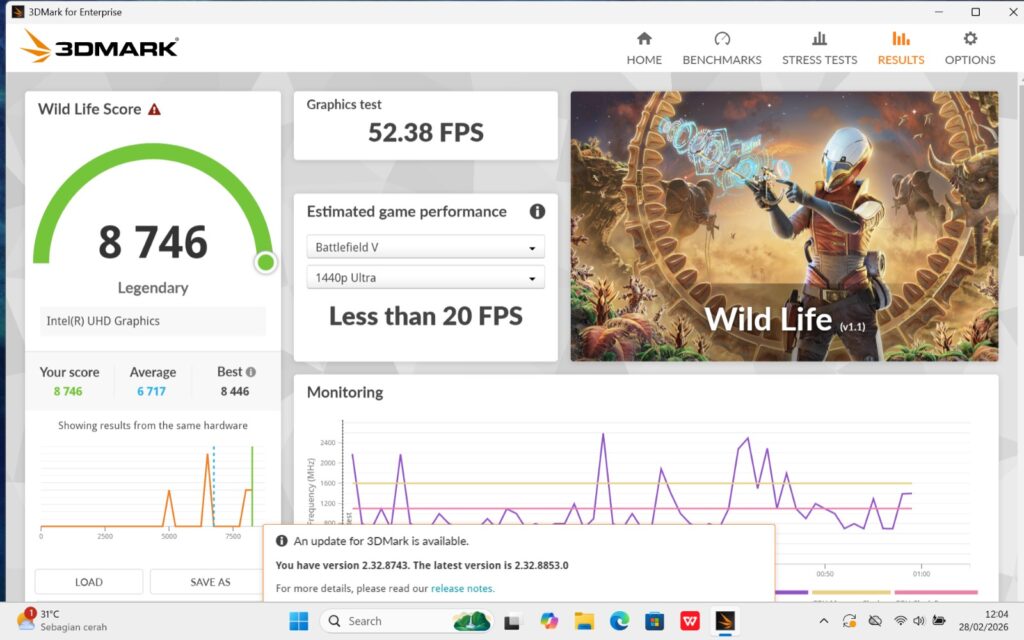 Dukungan dapur pacunya itu tentunya lebih dari cukup untuk menangani aktivitas multitasking ringan hingga menengah. Dukungan RAM 16GB LPDDR4 3200MHz yang disematkan oleh Colorful ke dalam laptop ini juga menjadi nilai jual utama.