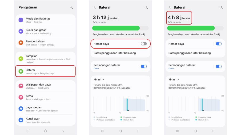 Fitur ini memungkinkan baterai bertahan lebih lama, terutama saat digunakan dalam kondisi mobilitas tinggi. Caranya sangat mudah: