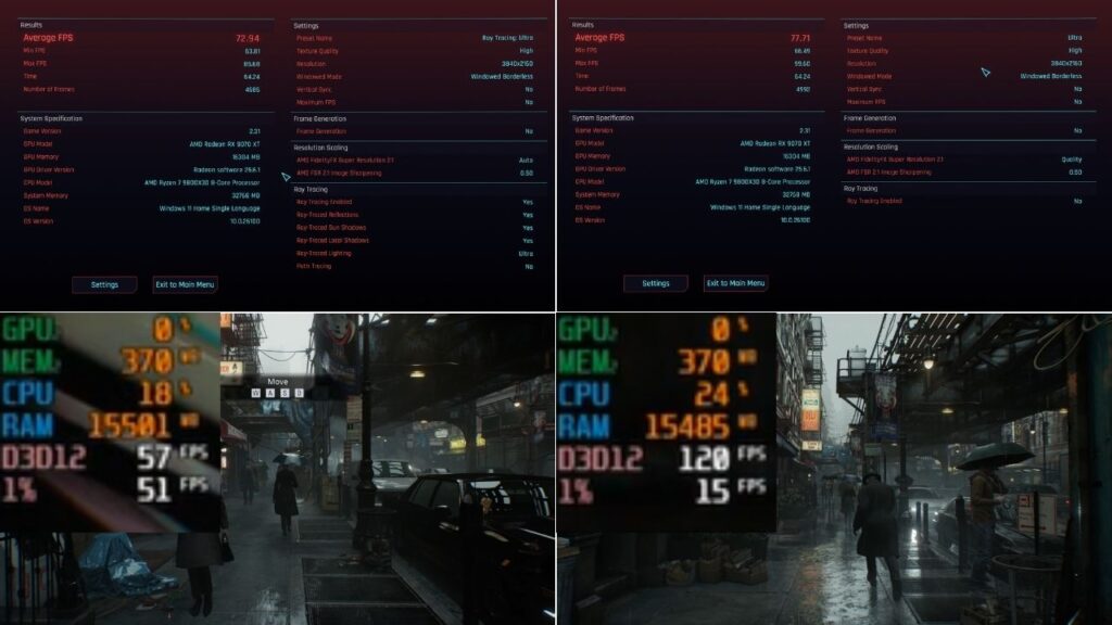 Bahkan di game terberat seperti Cyberpunk 2077 dengan fitur pencahayaan visual yang haus performa, kombinasi Radeon generasi terbaru dengan fitur FSR (FidelityFX Super Resolution) mampu menjaga kenyamanan bermain di resolusi 4K dengan frame rate stabil di atas 72 FPS.