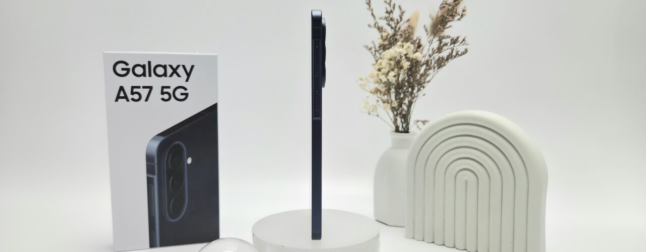 Galaxy A57 5G tampil dengan desain lebih premium, tipis dan ringan nyaman digenggam seharian.