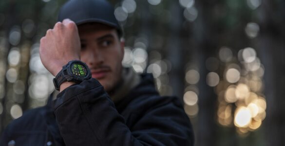 Bodinya telah menggunakan material fiber-reinforced polymer, dan dilengkapi bezel logam, layar anti gores, serta ketahanan air hingga 100 meter.